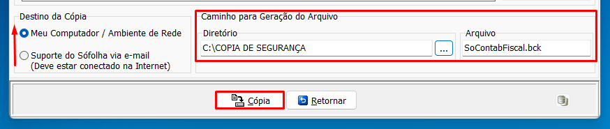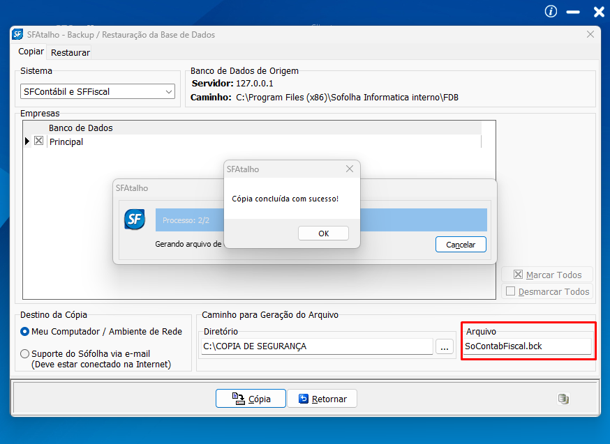 4. Ao finalizar a cópia de segurança, a extensão do arquivo será ".bck". Exemplo: SoContabFiscal.bck
