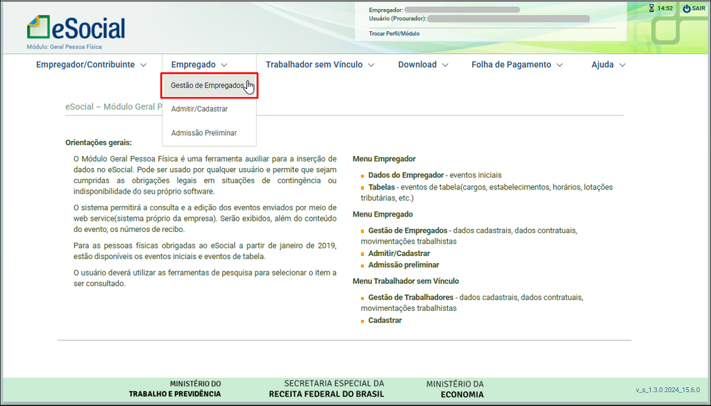 1. Acesse o portal do eSocial e navegue até Empregado > Gestão de Empregado.
