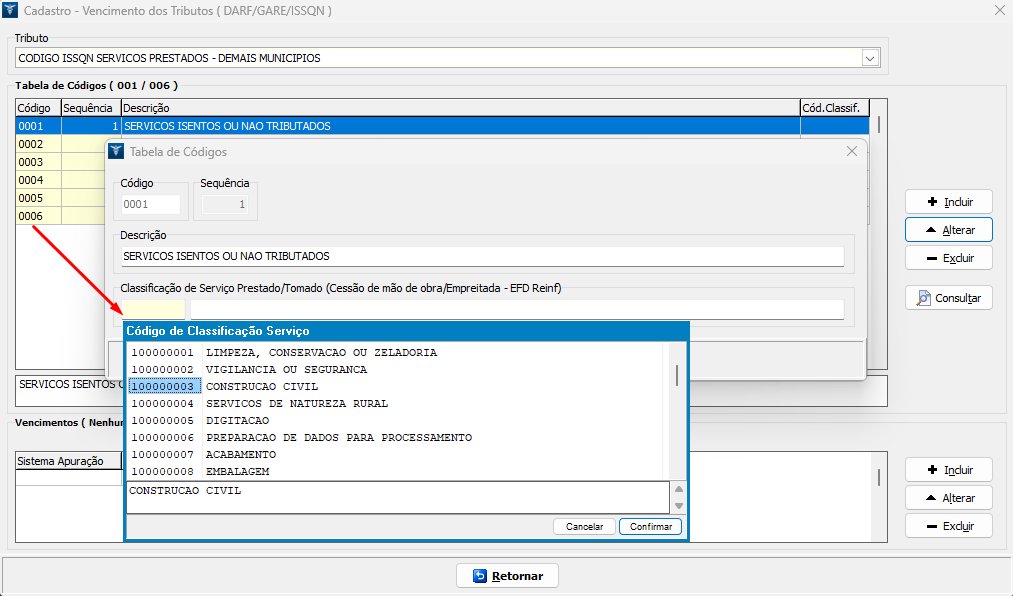 Como cadastrar a Classificação Tributária no Código de Serviço - EFD Reinf Série 2000