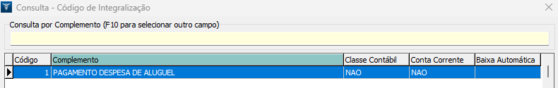 8. Após análise do CNR a ser utilizado, clique sobre o código e confirme. No exemplo efetuamos o cadastro do C.I. sobre o pagamento de despesa de aluguel.