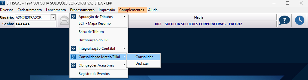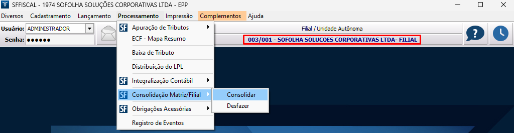 Para efetuar a consolidação da empresa matriz e filial, siga os procedimentos abaixo: