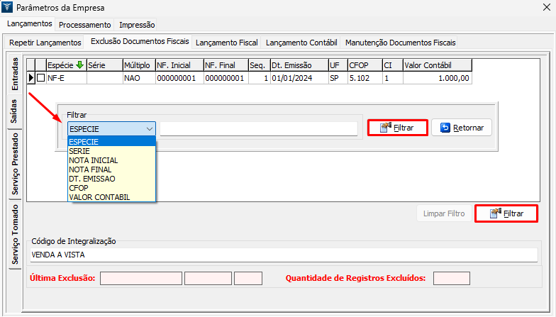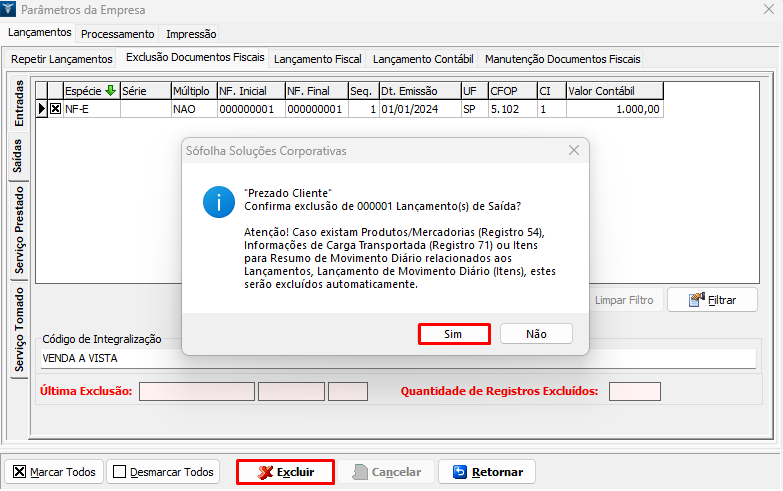 Como efetuar a exclusão dos Documentos Fiscais em lote