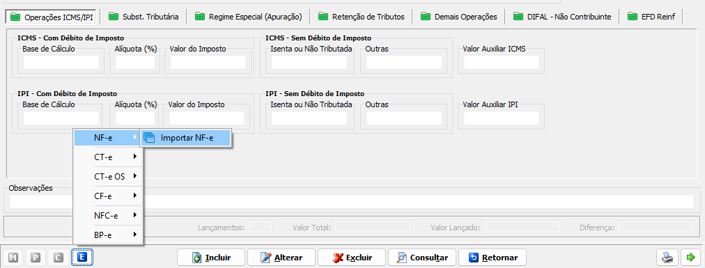 2. Ao lado esquerdo, no rodapé da tela, clique em E > NF-e > Importar NF-e;