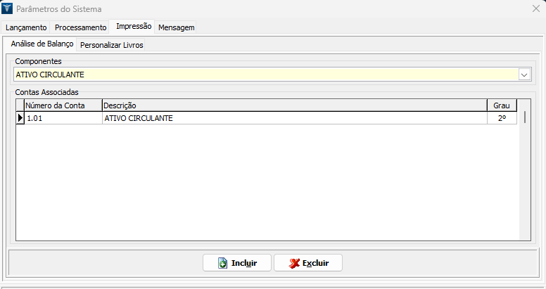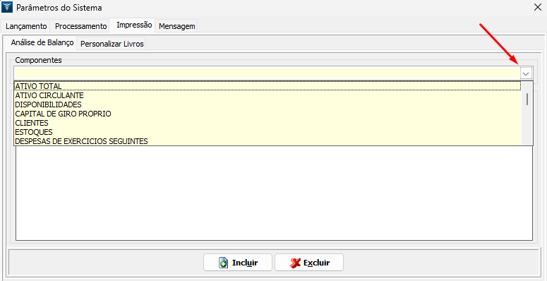 4. Poderá parametrizar todos os Componentes, ou somente aqueles que necessitar para a impressão da Análise Financeira. Observe o exemplo abaixo: