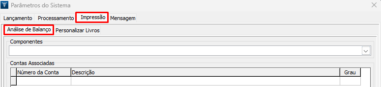 2. Clique na palheta Impressão > Análise de Balanço e altere;