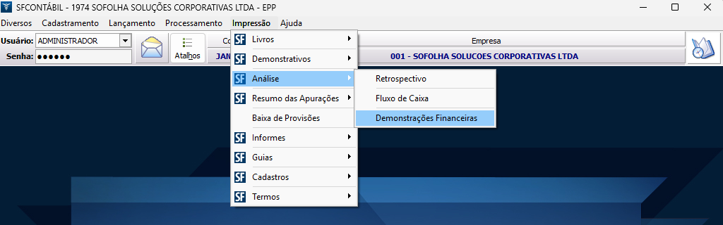 Para efetuar a impressão da Análise das Demonstrações Financeiras, siga os procedimentos abaixo: