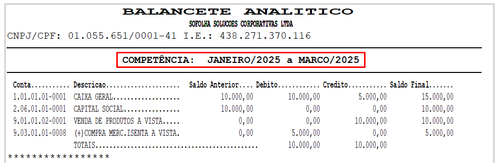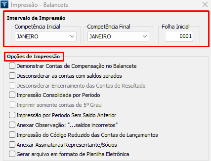 Para efetuar a impressão do Balancete, siga os procedimentos abaixo: