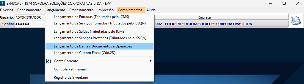 1. Na tela inicial do sistema, acesse o menu Lançamento > Lançamento de Demais Documentos e Operações;
