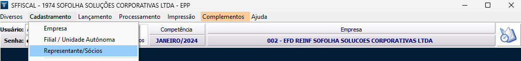 Caso o sócio não seja apresentado, acesse a vigência inicial do mesmo no sistema, após retorne no menu Cadastramento > Representante/Sócios e inclua suas informações.