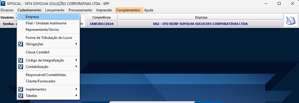 Para habilitar a empresa para gerar a EFD Reinf, siga os passos abaixo: