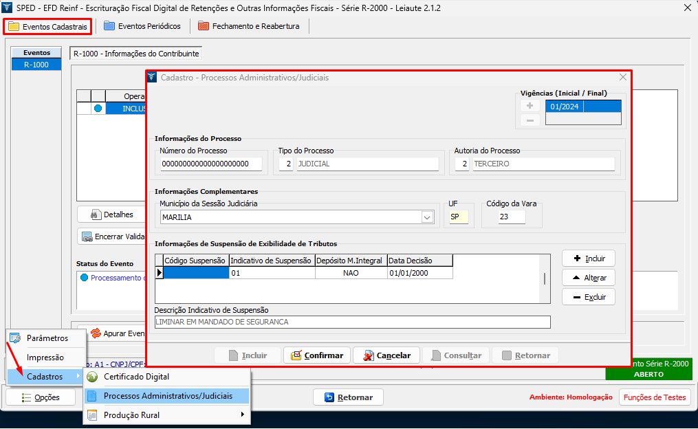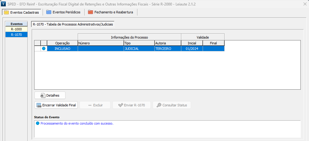 Para enviar o evento R-1070, siga os procedimentos abaixo: