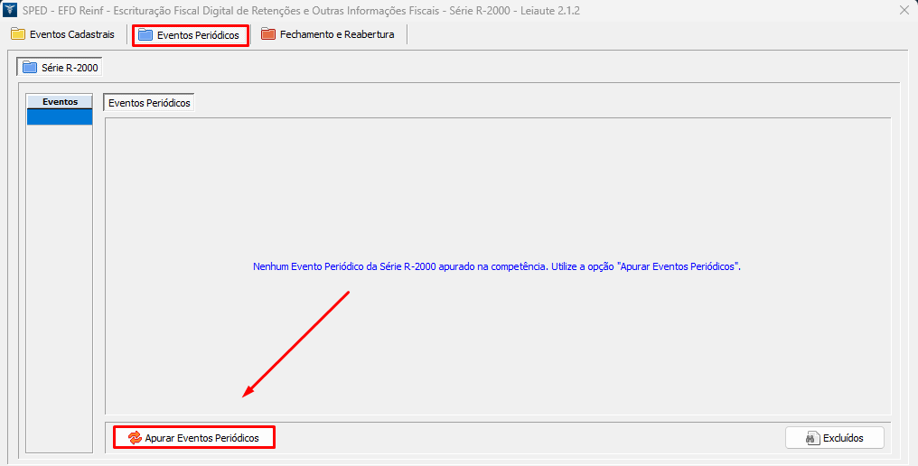 4. Na palheta Eventos Periódicos, clique em Apurar Eventos Periódicos;