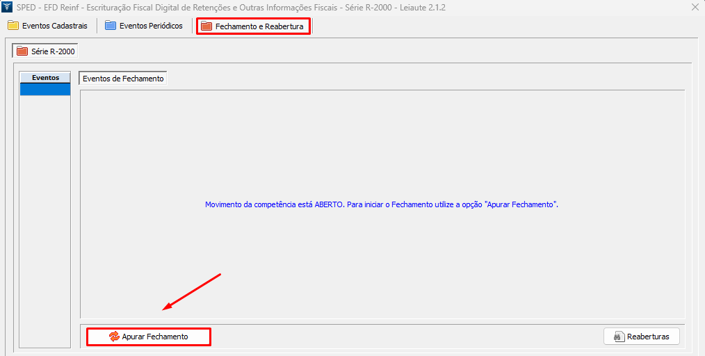 2. Acesse a aba Fechamento e Reabertura, clique em Apurar Fechamento. A apuração do evento será concluída com sucesso;