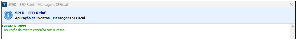 O evento R-2099 - Fechamento dos eventos da série R-2000 é aquele pelo qual se informa o encerramento da transmissão dos eventos periódicos da série R-2000 na EFD-Reinf em determinado período de apuração, momento em que, todas as informações prestadas relativas aos eventos periódicos dessa série são consolidadas e encaminhadas para a DCTFWeb.