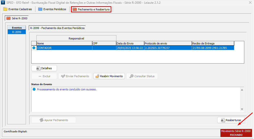 Para enviar o evento R-2099, siga os procedimentos abaixo: