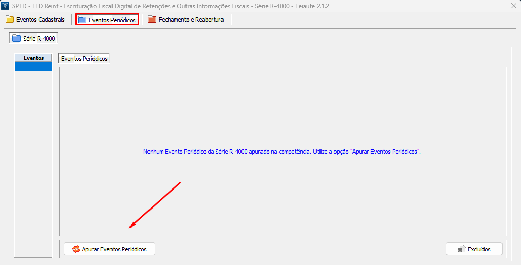 5. Na aba Eventos Periódicos, clique em Apurar Eventos Periódicos;