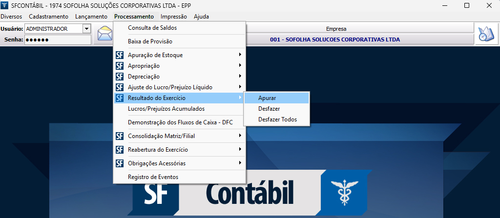 1. No módulo SFContábil, certifique-se que a empresa está com o balanço devidamente encerrado em 12/20XX;