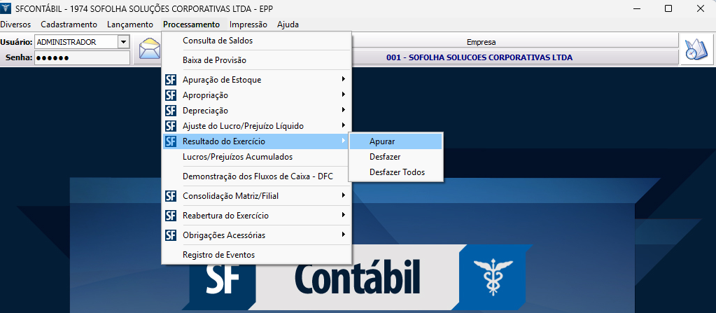 1. No módulo SFContábil, certifique-se que a empresa está com o balanço devidamente encerrado em 12/20XX;