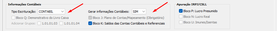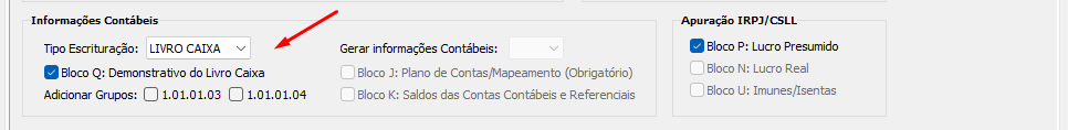 Livro Caixa: Não obrigada a entrega da ECD. Selecione o Bloco Q Demonstrativo do Livro Caixa se obrigatório e/ou entrega facultativa.
