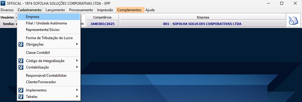 1. Na tela principal do sistema, acesse o menu Cadastramento > Empresa, no rodapé clique em Alterar;
