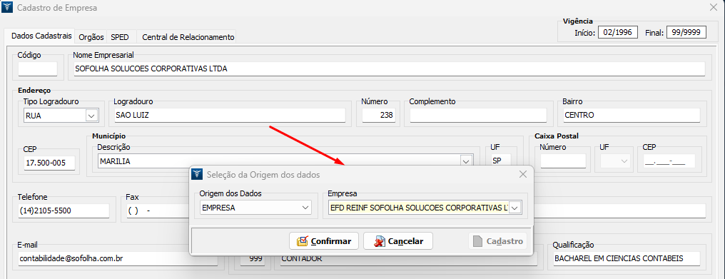 Como identificar a Origem dos Dados da empresa - Classe Contábil, Padrão e Empresa