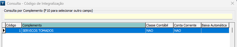 Complemento: É a descrição do C.I., informe a descrição desejada para melhor identificar o código;